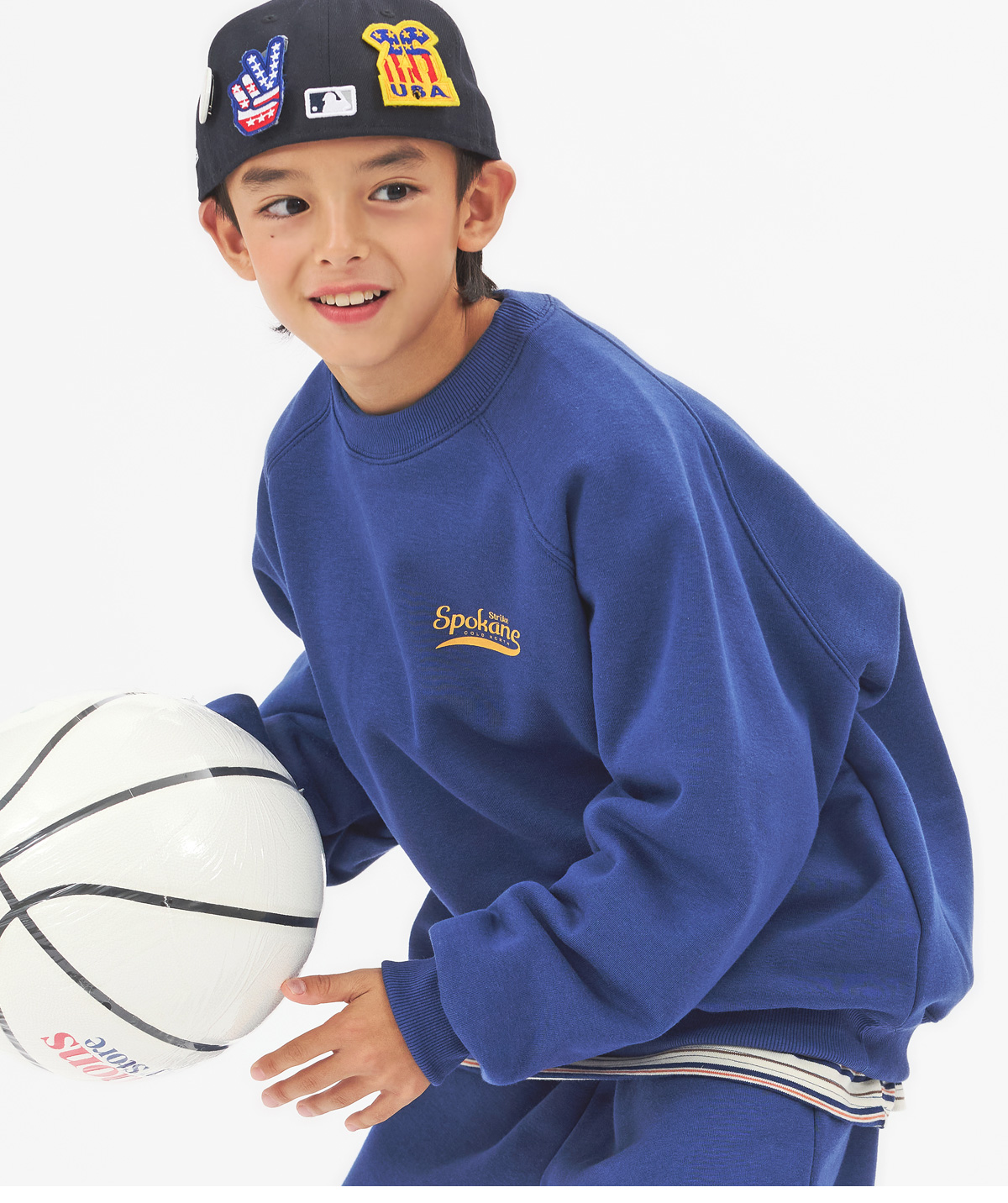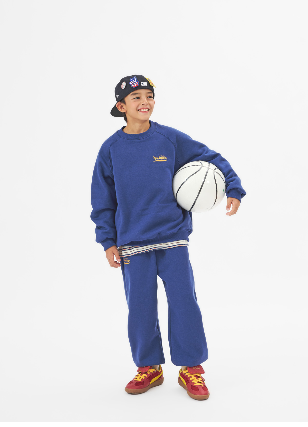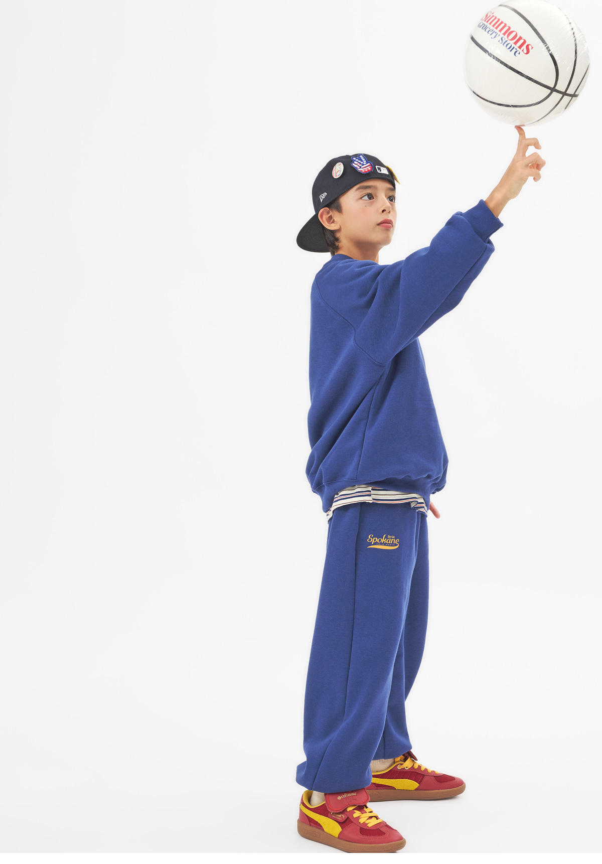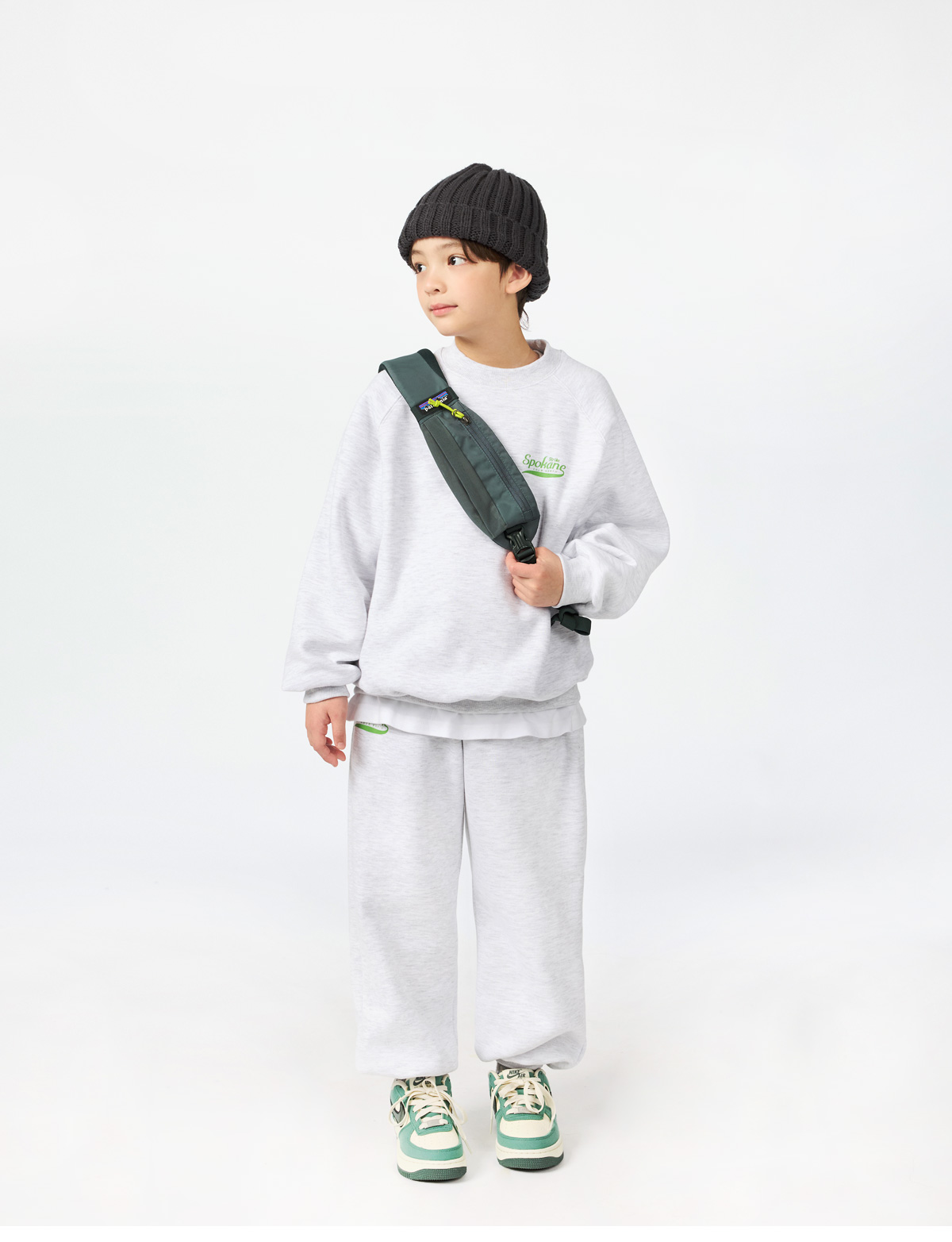 넉넉한 오버핏 맨투맨과 와이드 팬츠 구성으로
