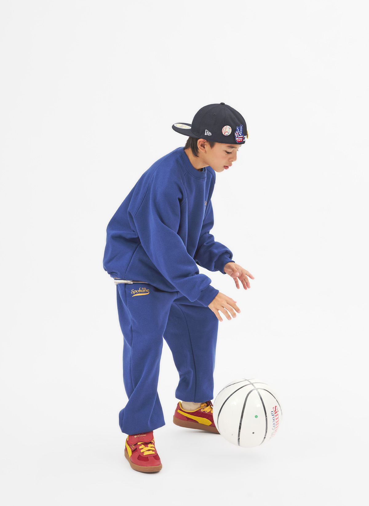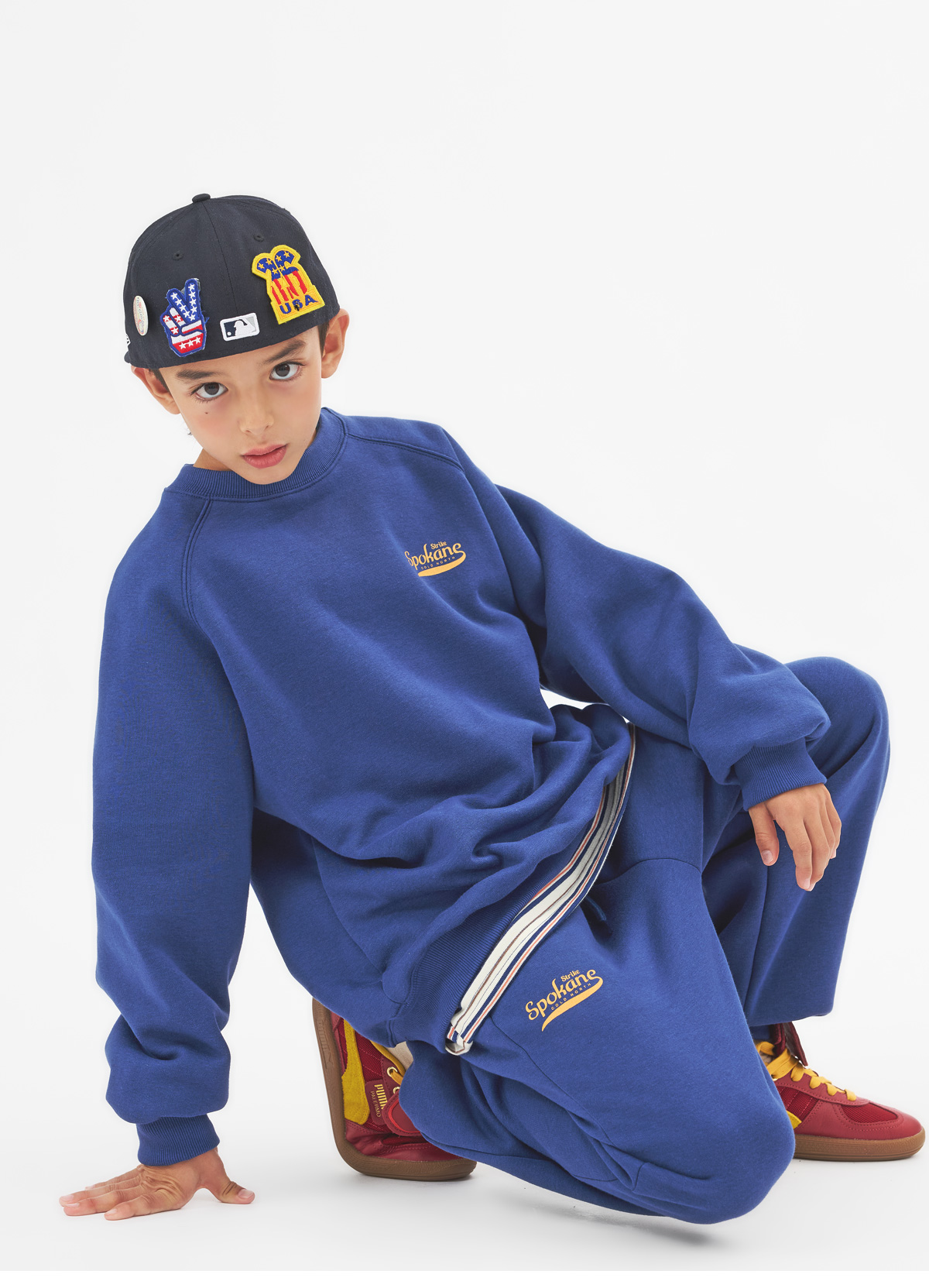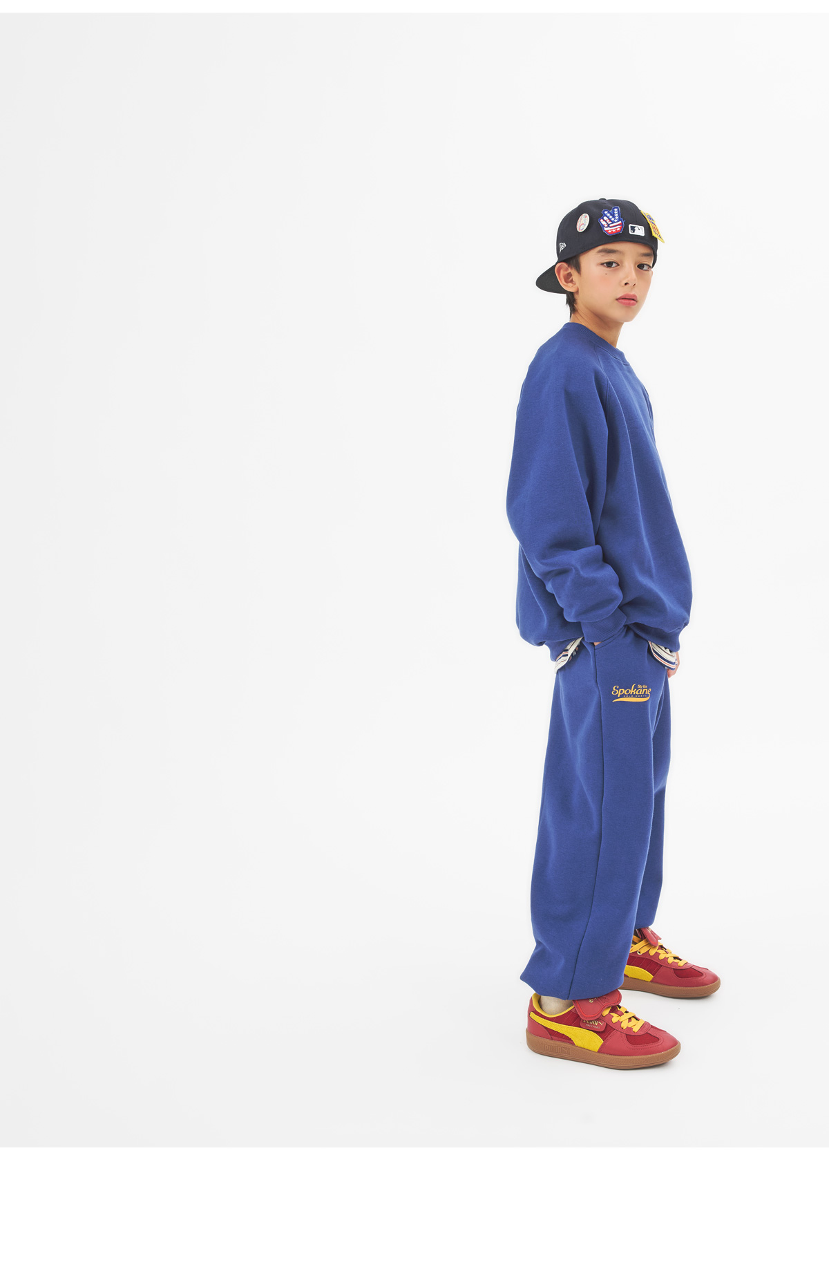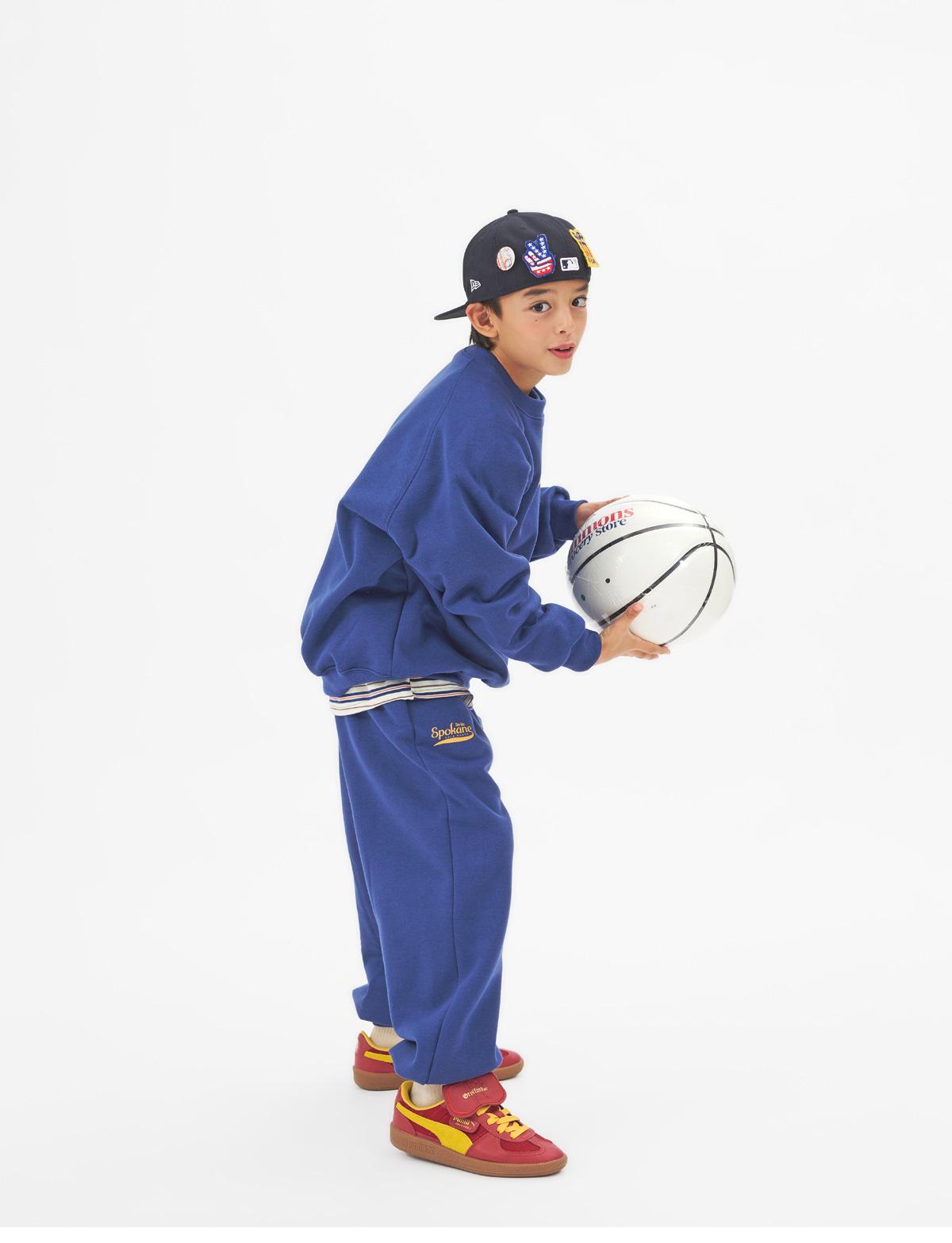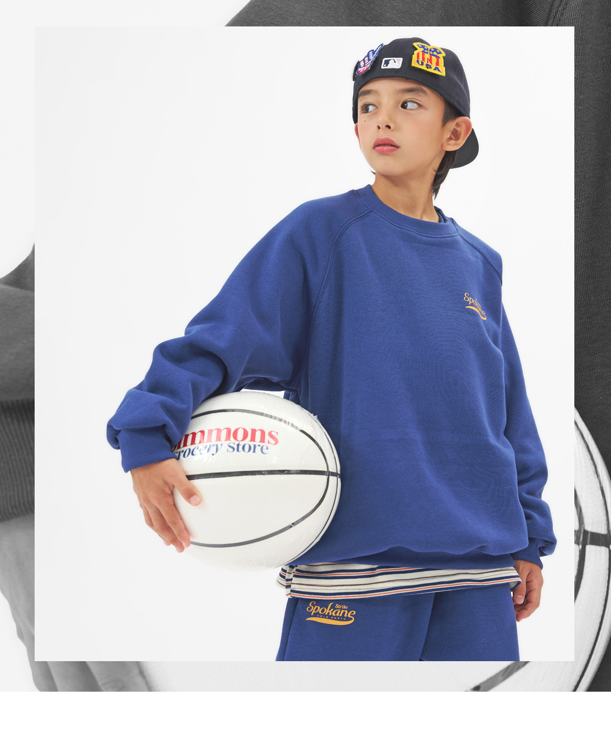 넉넉한 오버핏 맨투맨과 와이드 팬츠 구성으로
