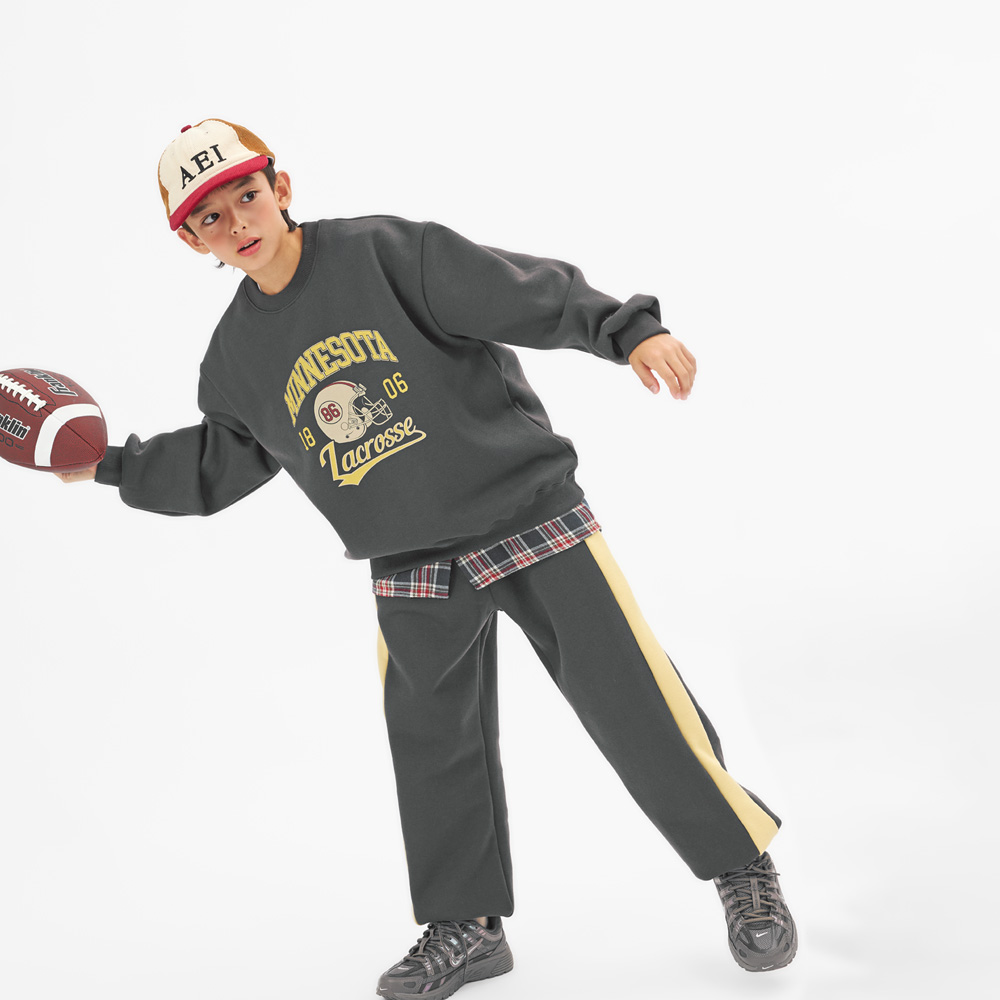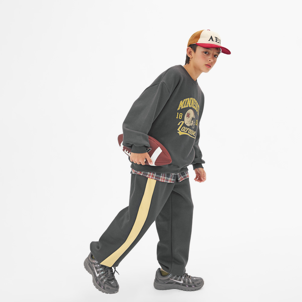 팬츠는 옆선 배색 라인으로 스포티한 느낌을 더했어요.