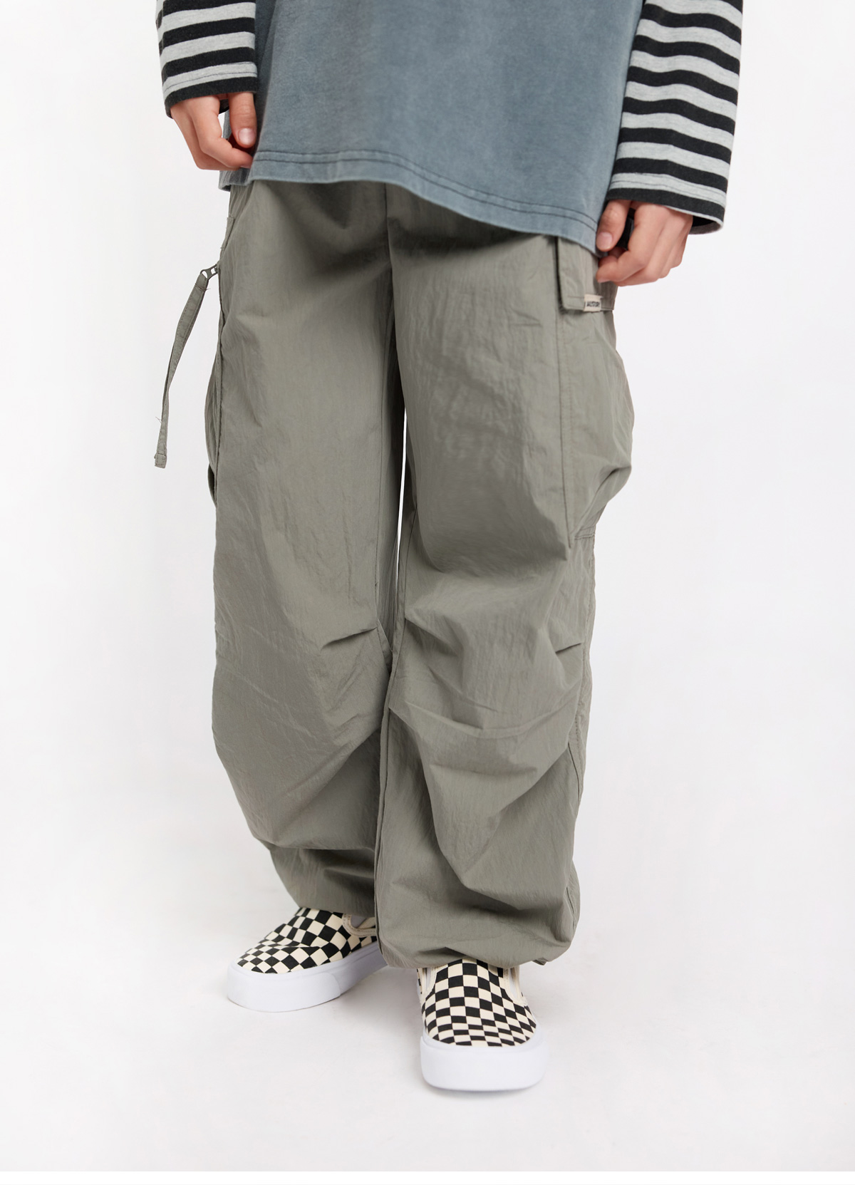양쪽 빅포켓이 돋보이는 우븐카고팬츠예요