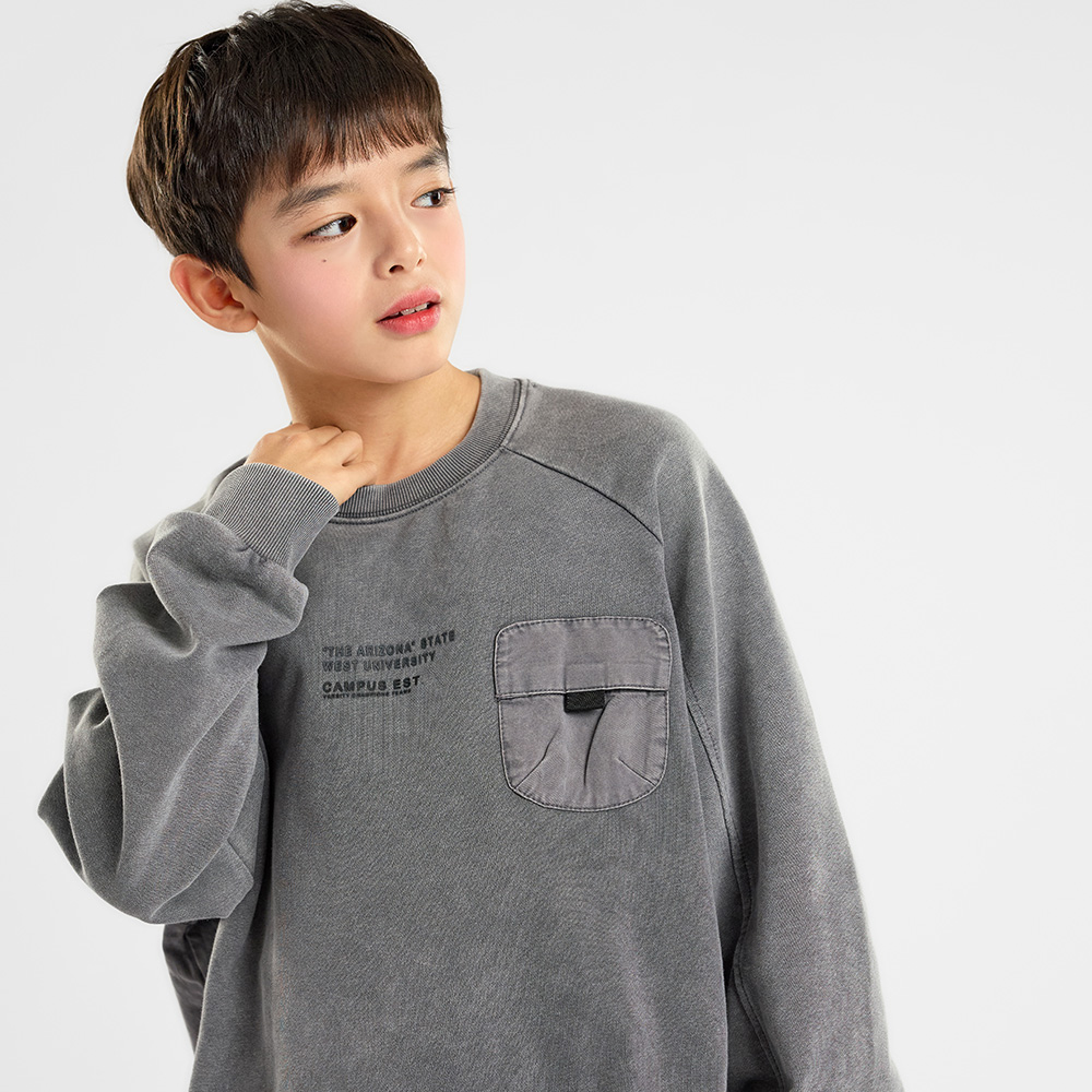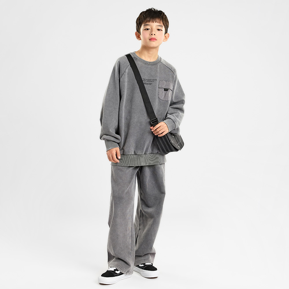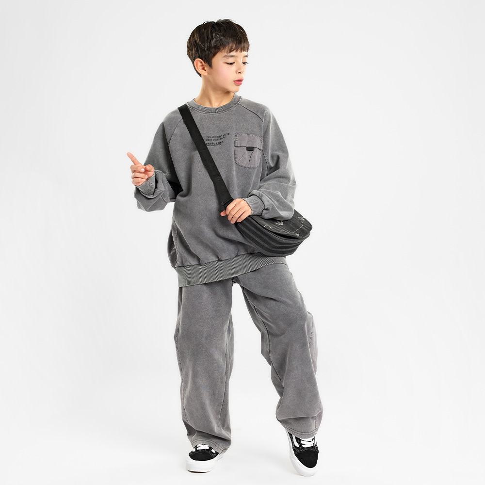 피그먼트 워싱으로 자연스러운 컬러감이 매력적인 차콜 컬러 상하셋업이에요.