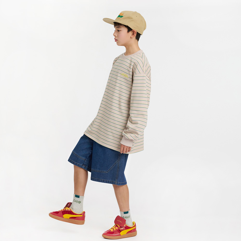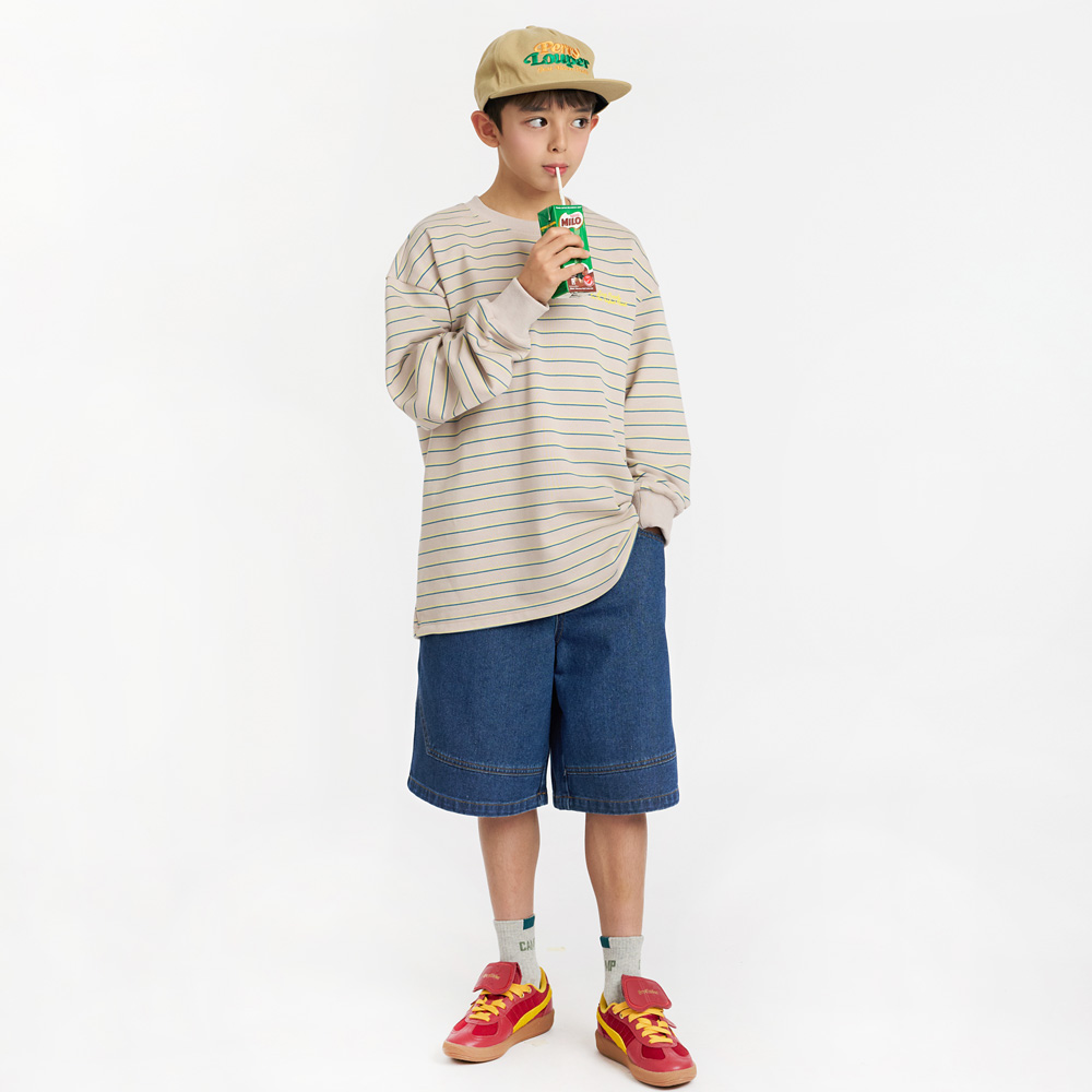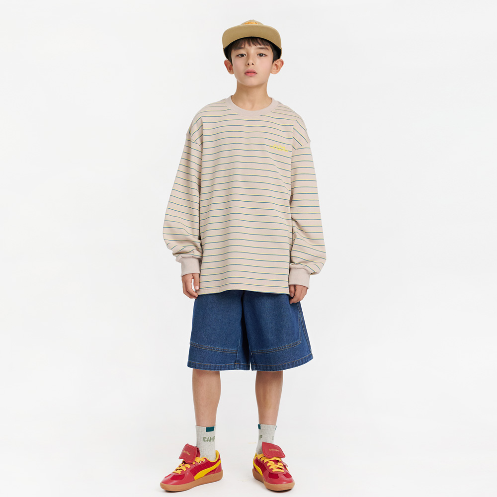 절개 스티치가 돋보이는 버뮤다 데님 팬츠예요