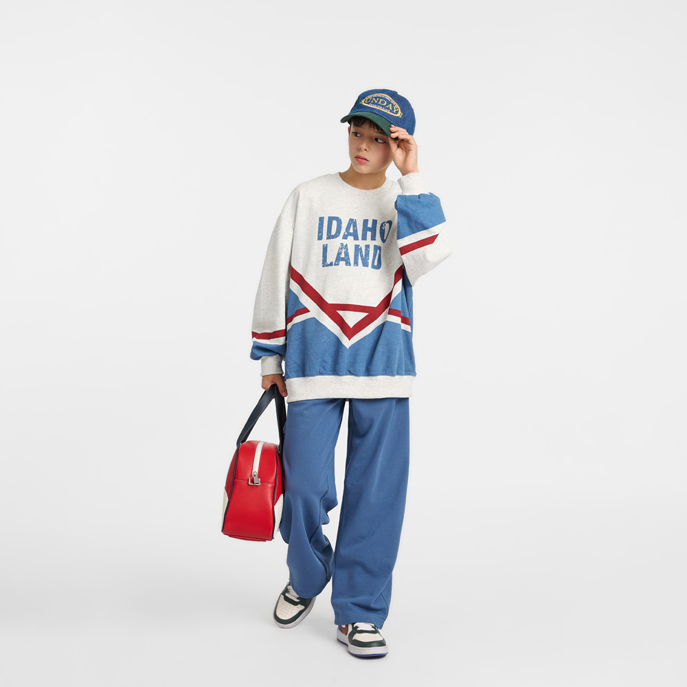 상의는 배색과 프린팅이 포인트가 되어 캐주얼한 무드를 살려주고,