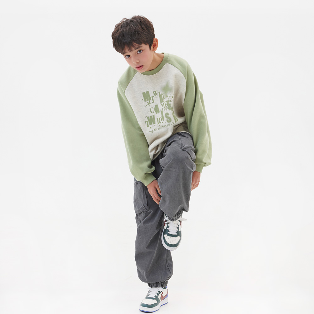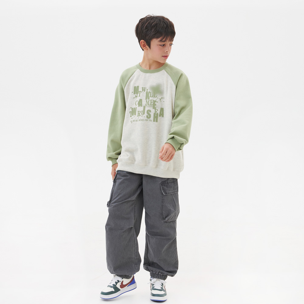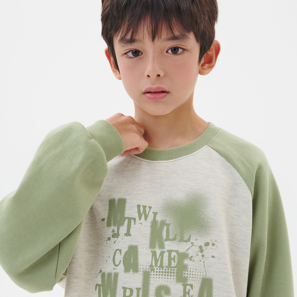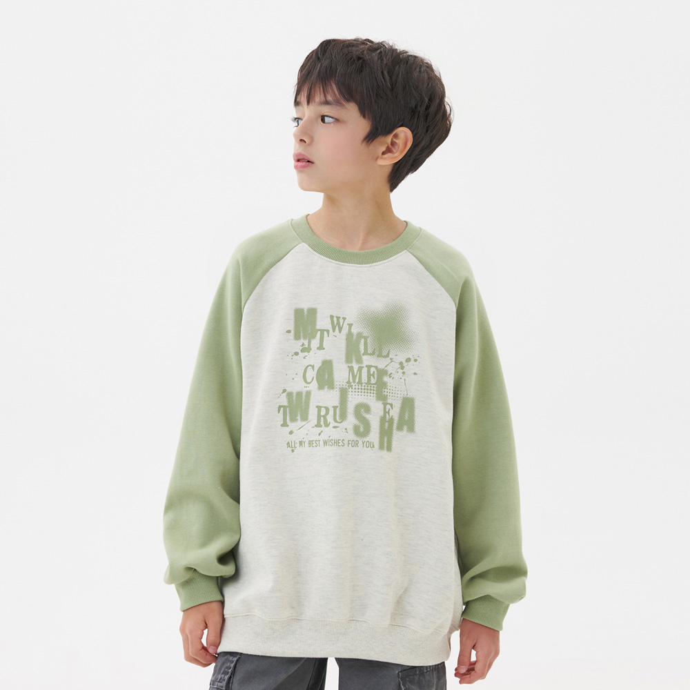 전면 영문 나염이 돋보이는 레글런 타입의 맨투맨