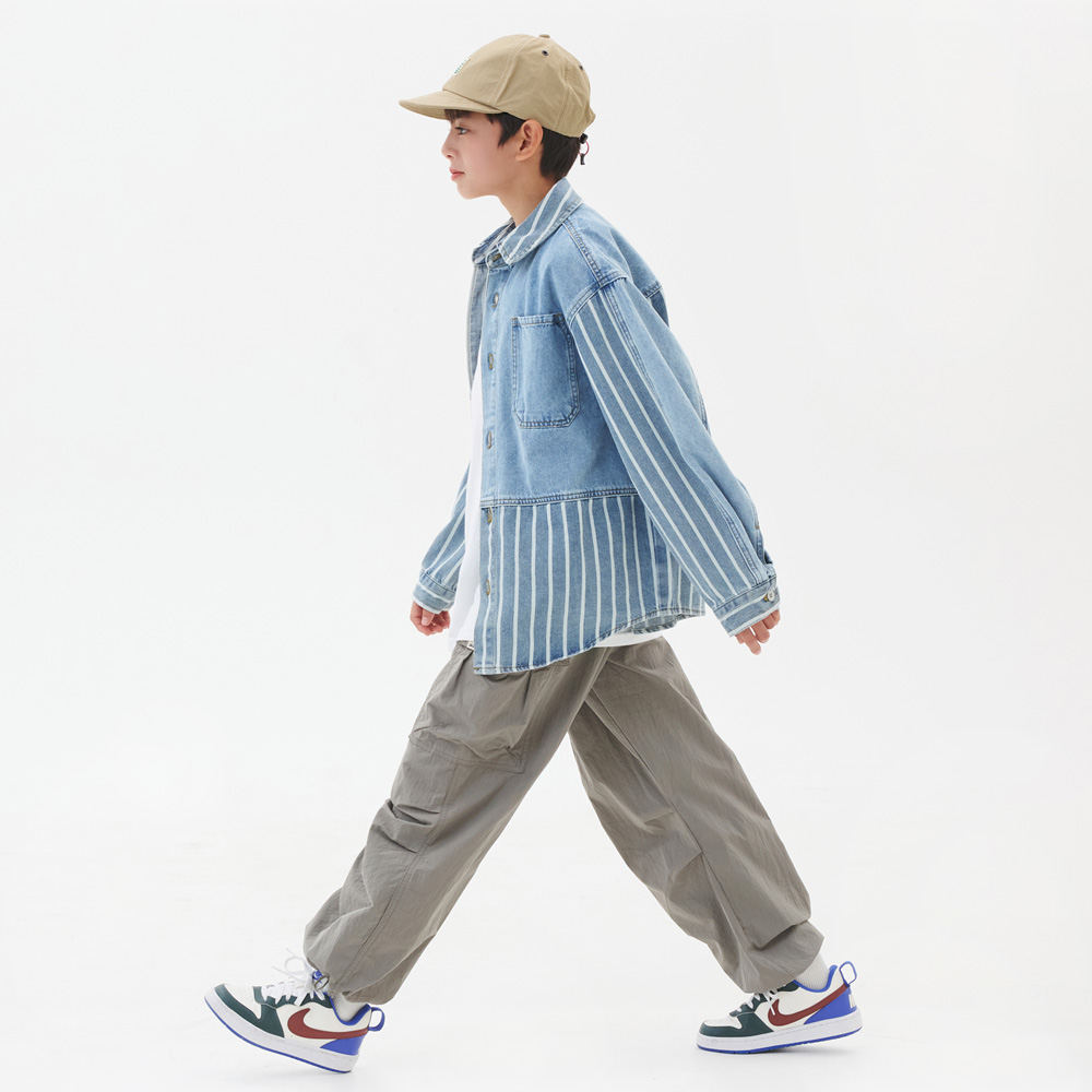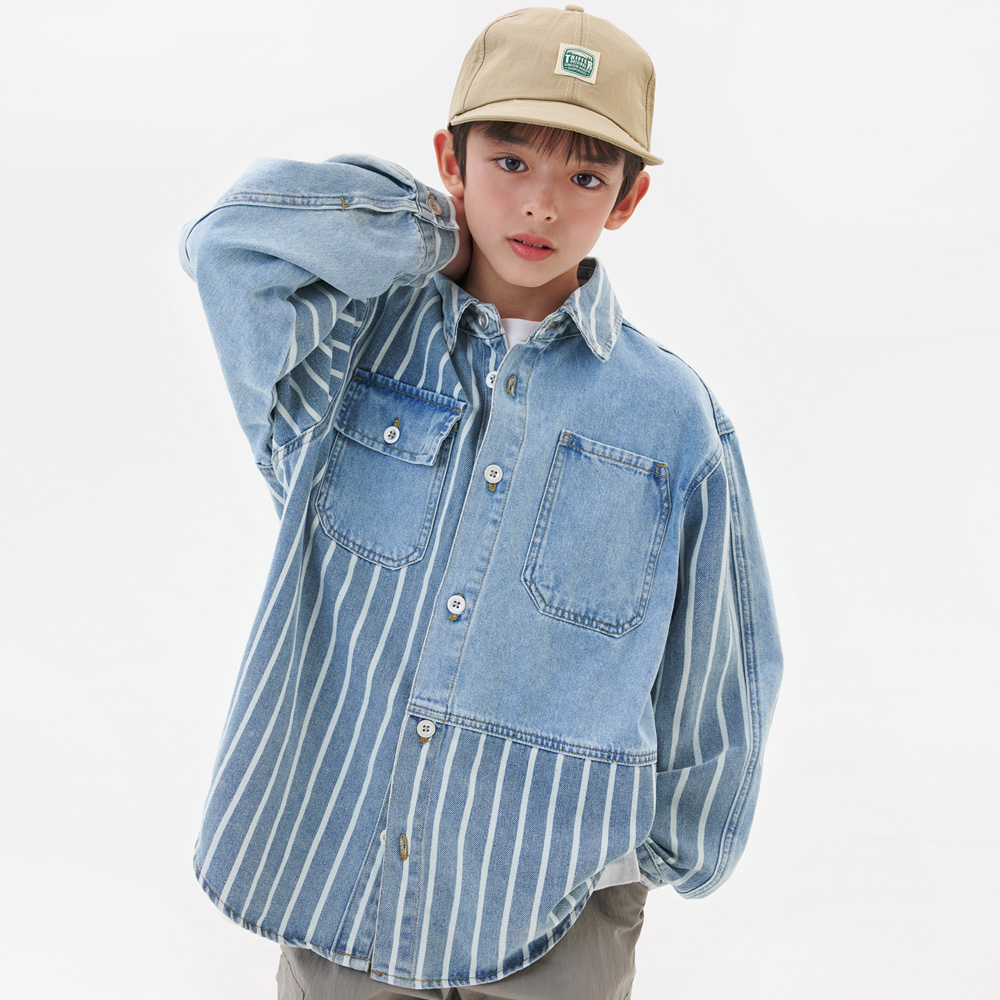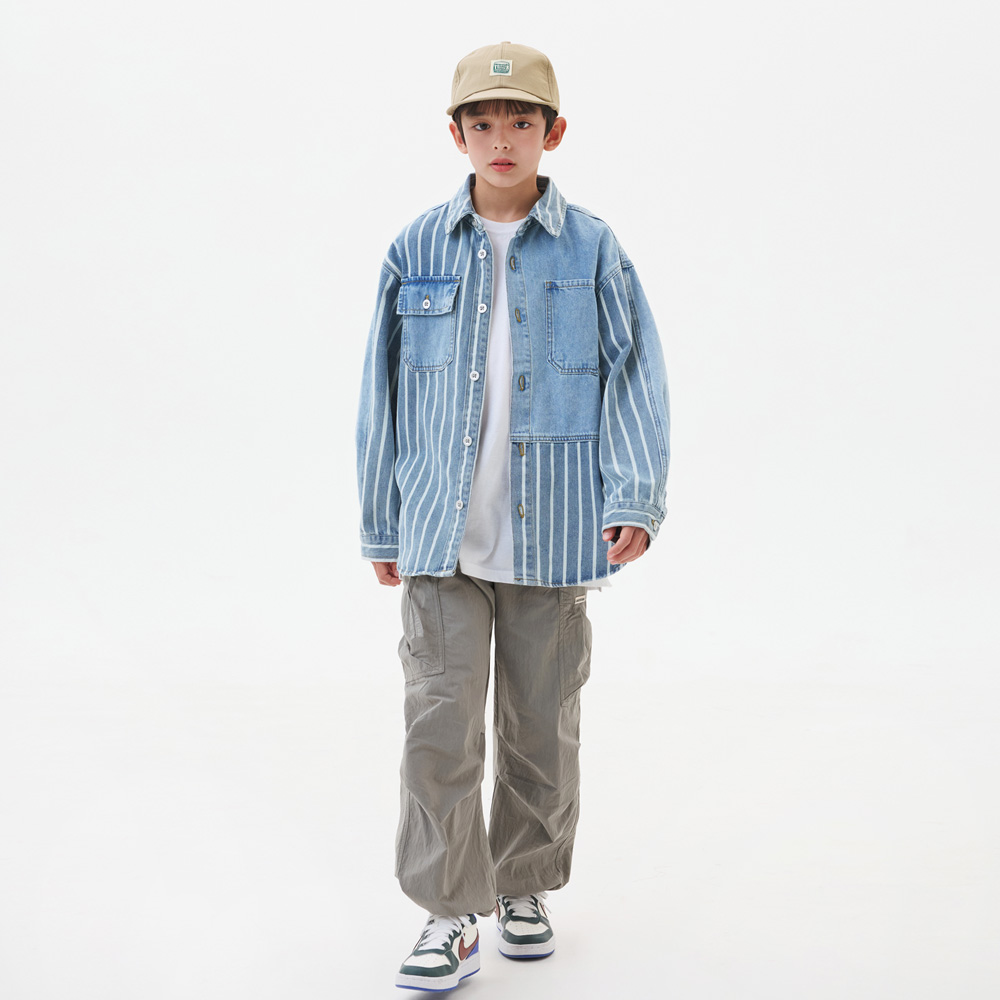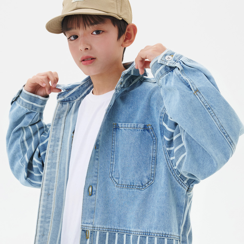적당히 여유를 가진 품에 스트라이프 패턴으로 포인트를 준 데님셔츠자켓이예요