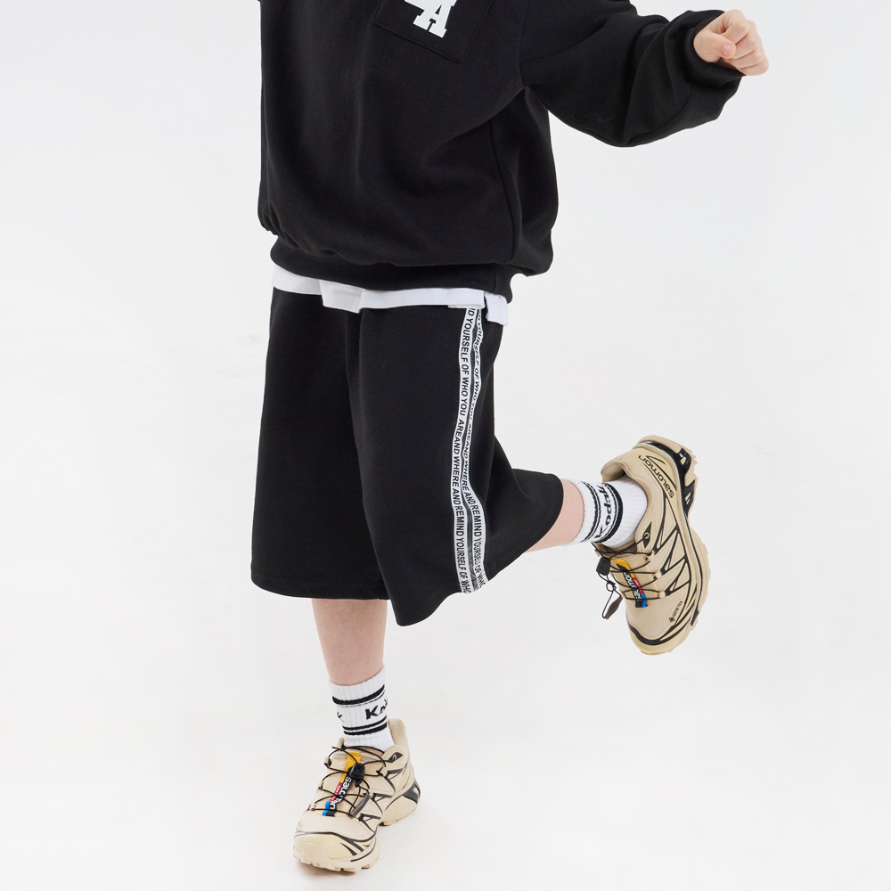 양옆 영문 테이핑이 돋보이는 버뮤다 팬츠예요