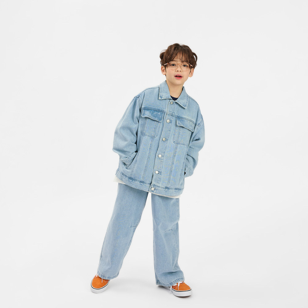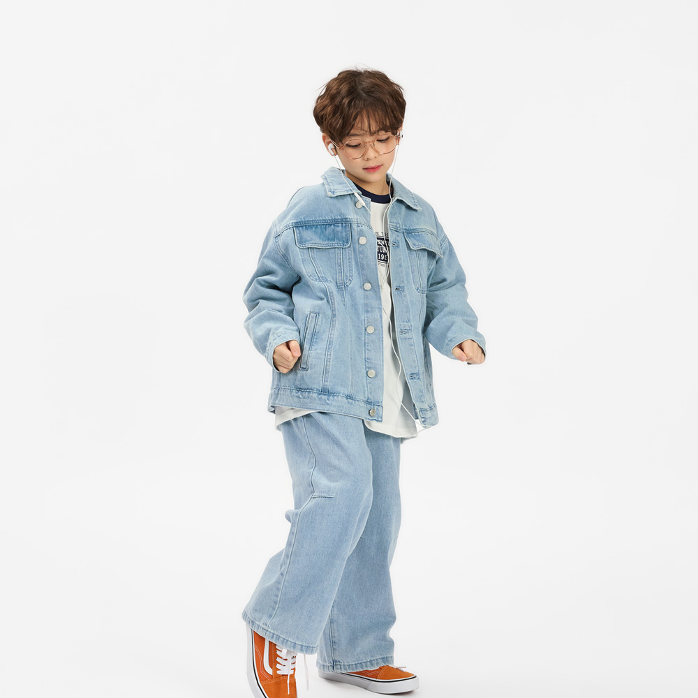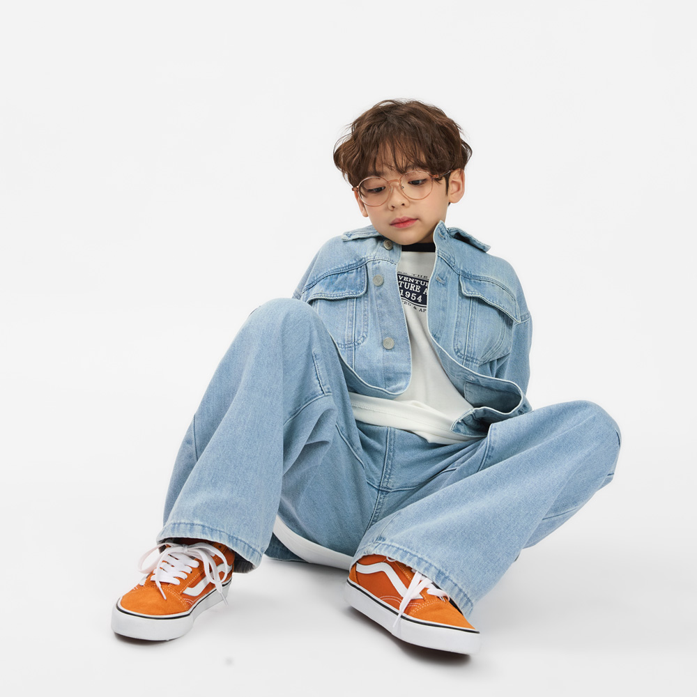캐주얼한 무드가 자연스럽게 살아 있는 데님 상하세트예요.