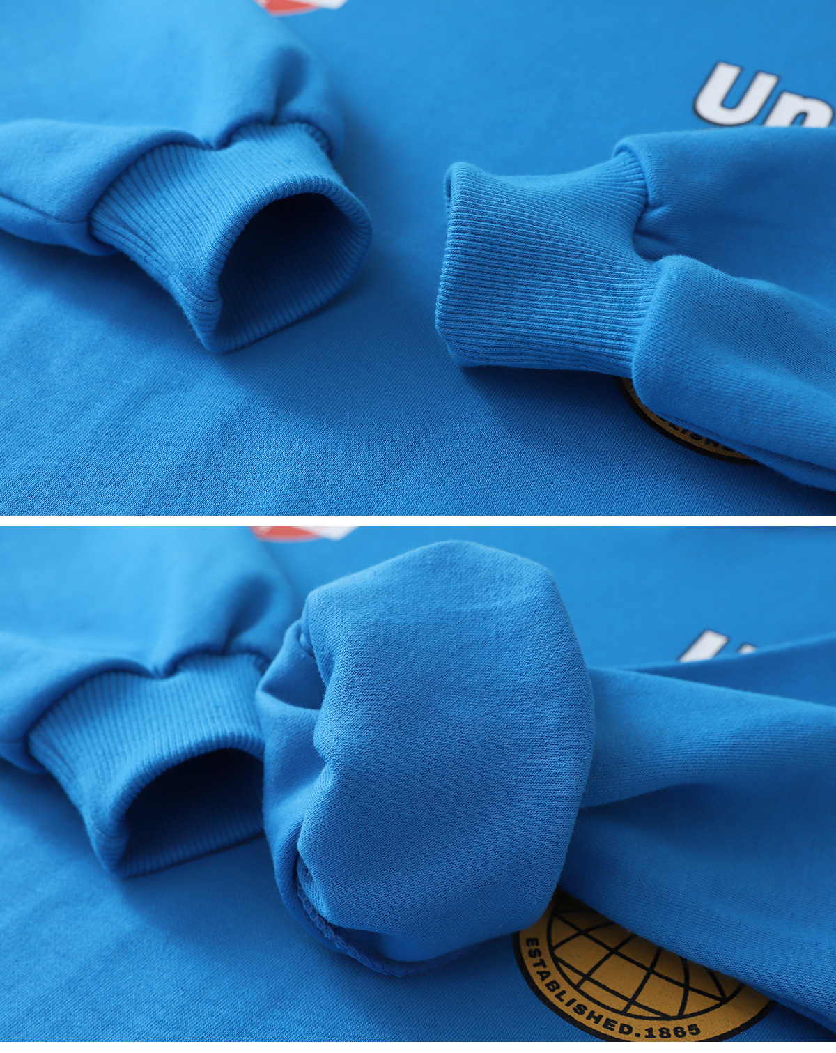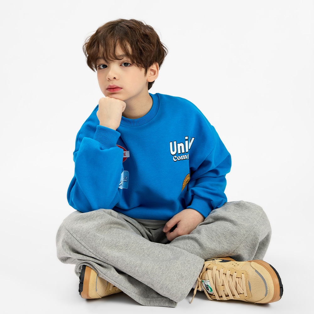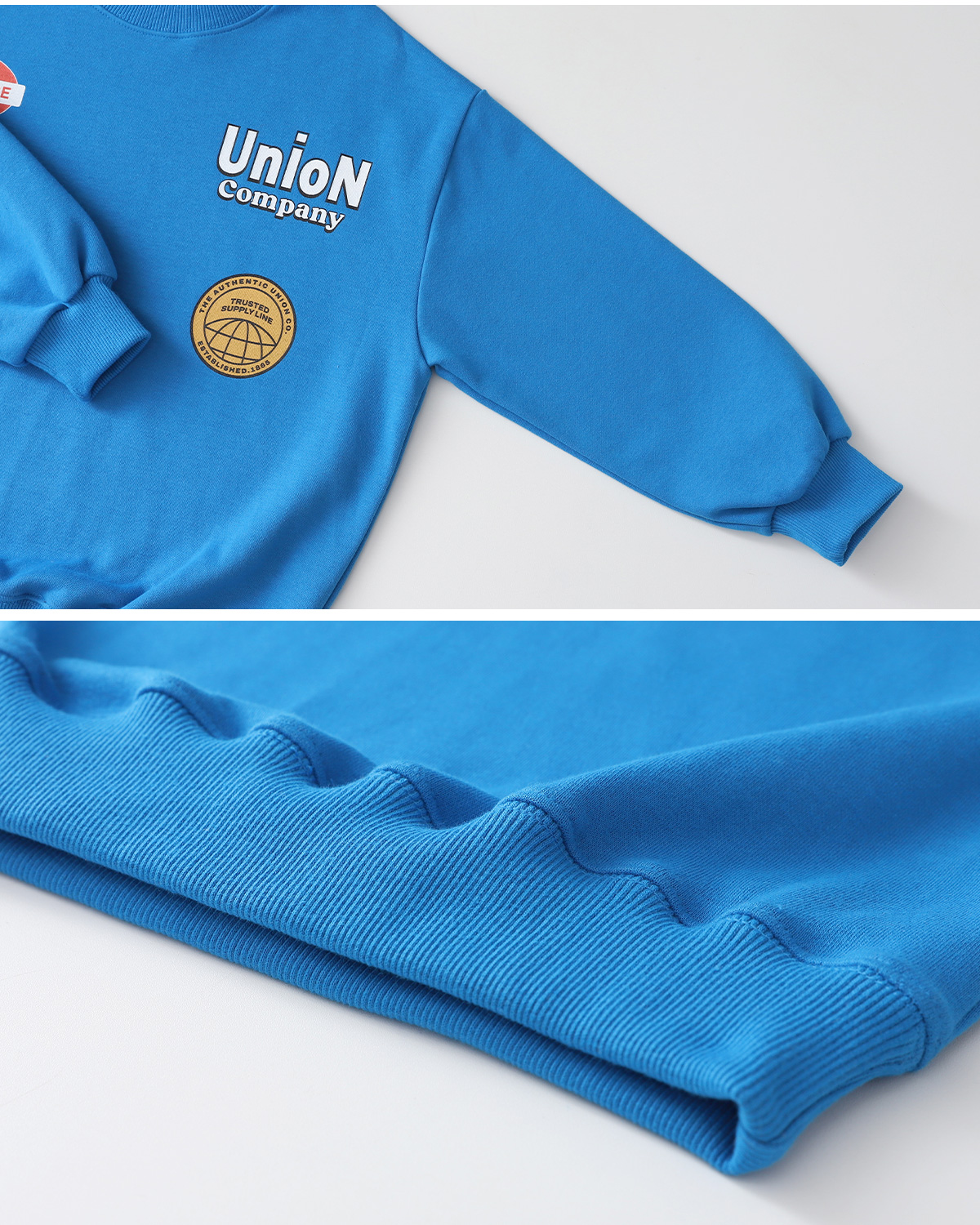 선명한 블루 컬러에 패치 프린팅 포인트를 더해 경쾌한 분위기가 살아 있는 맨투맨이에요.