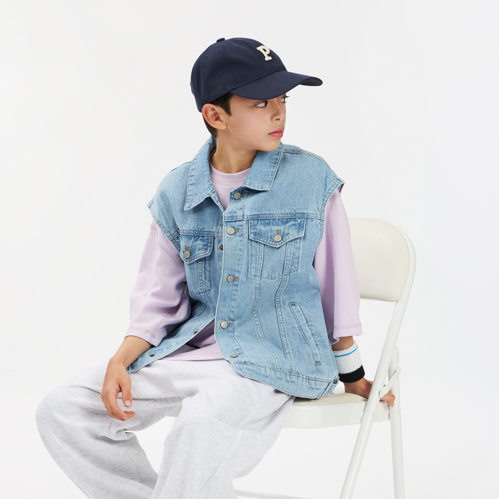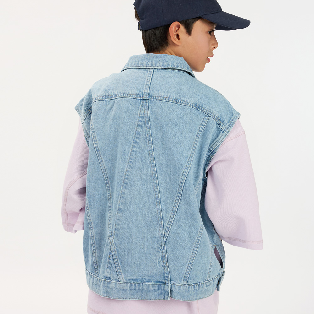 전체적으로 여유있어 편안한 핏이 연출되는 데님베스트예요