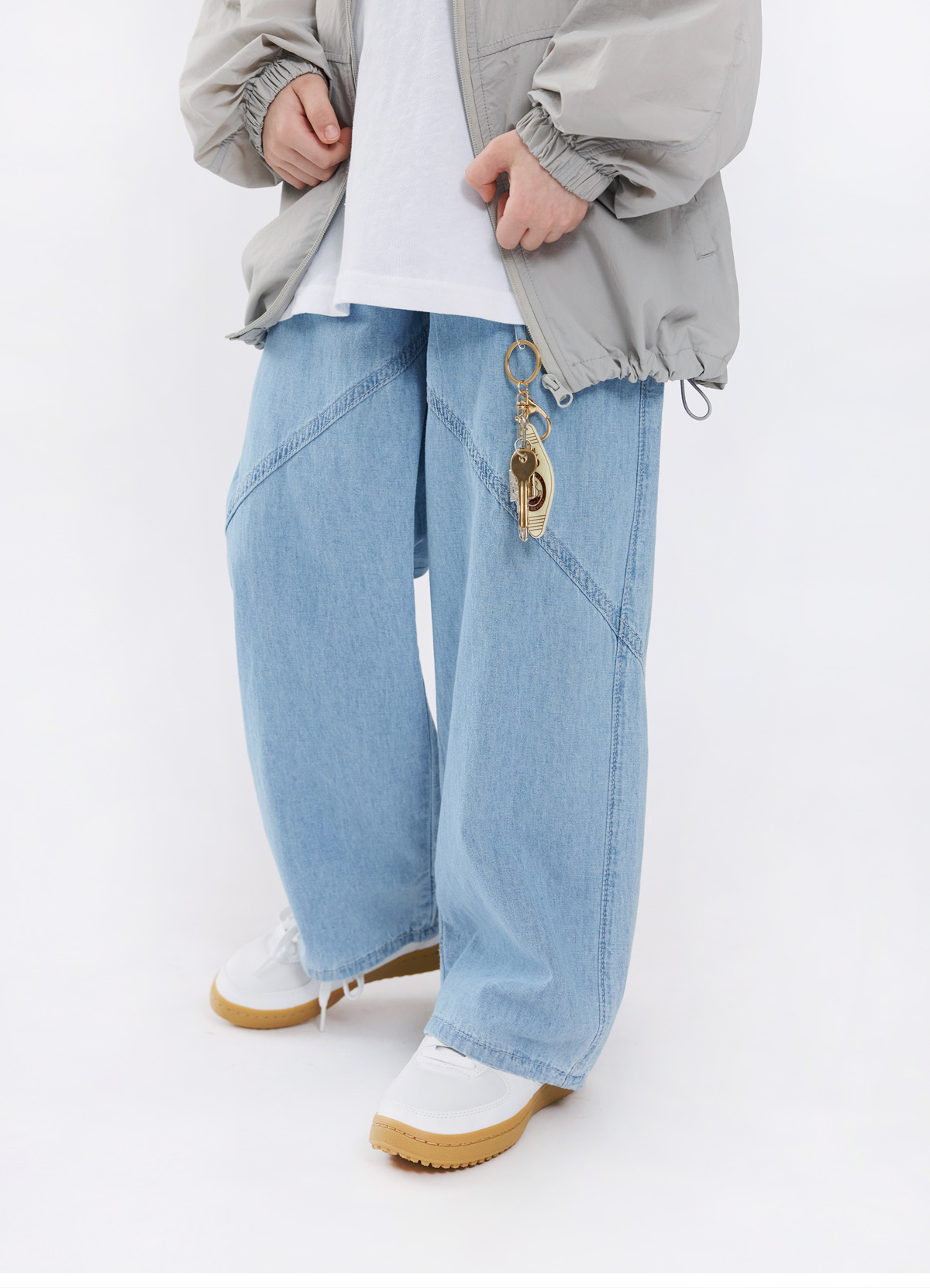 와이드한 실루엣에 절개선 디테일을 더해