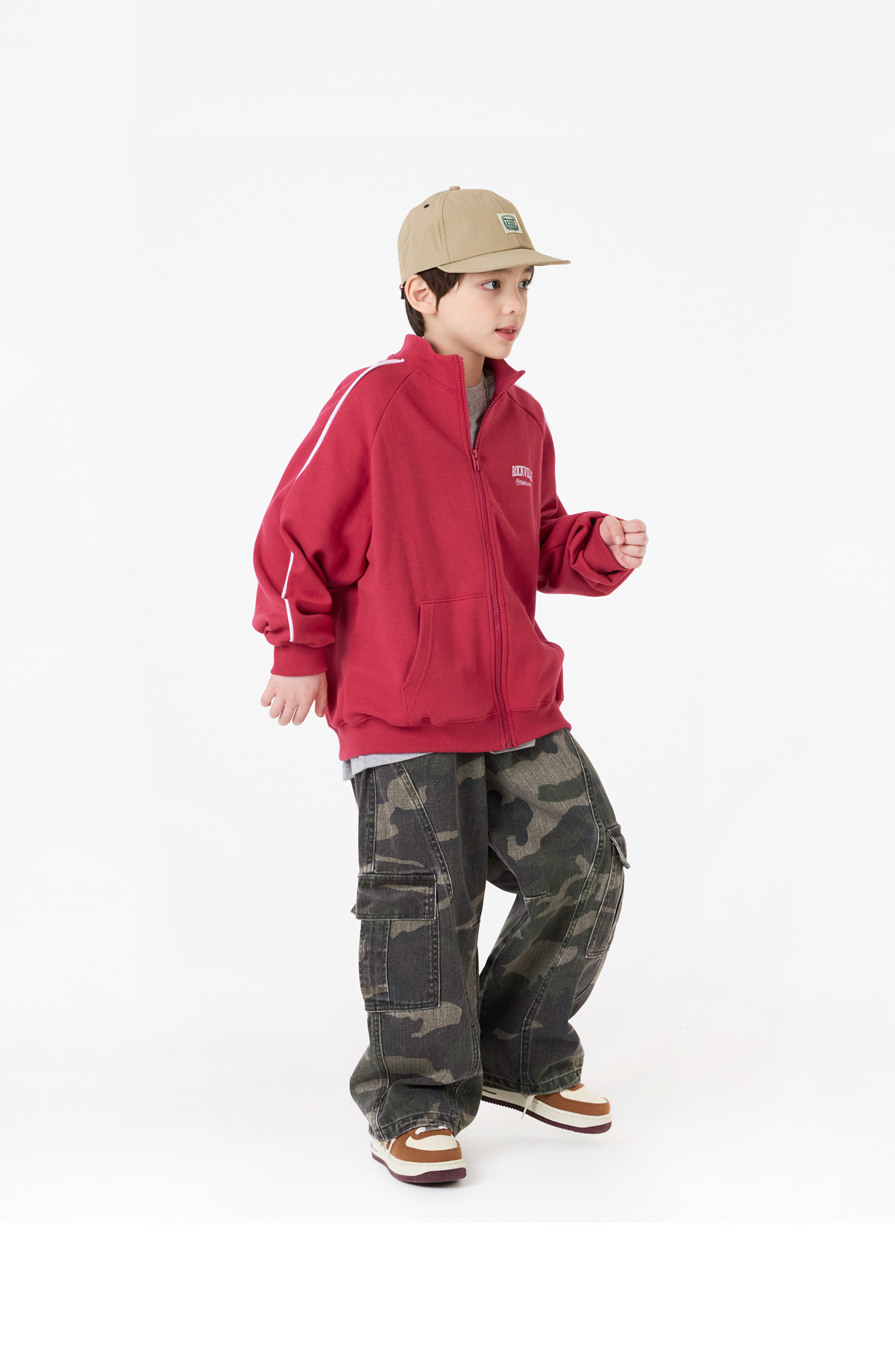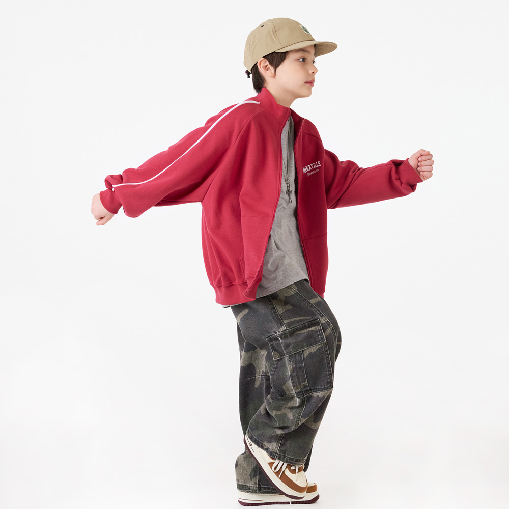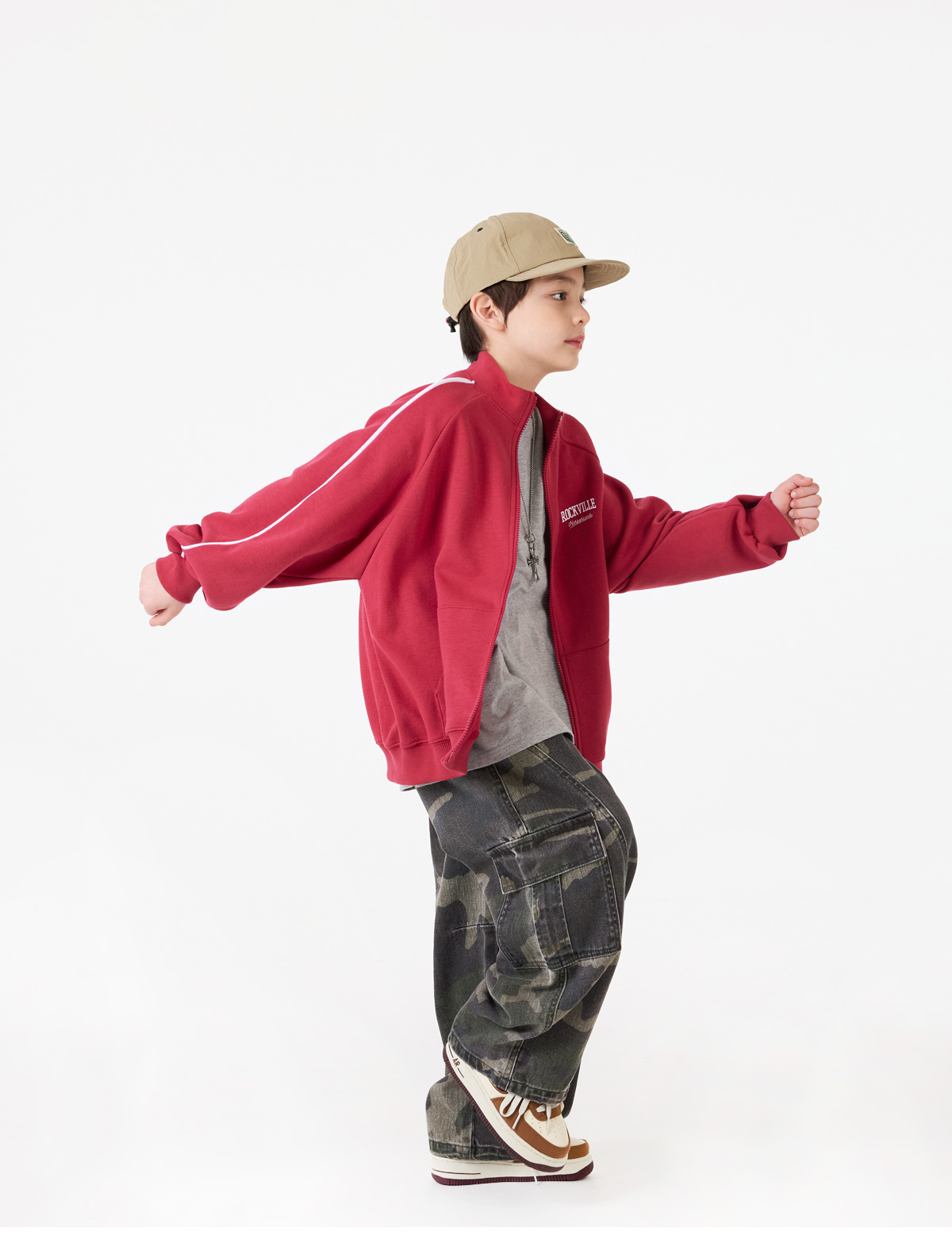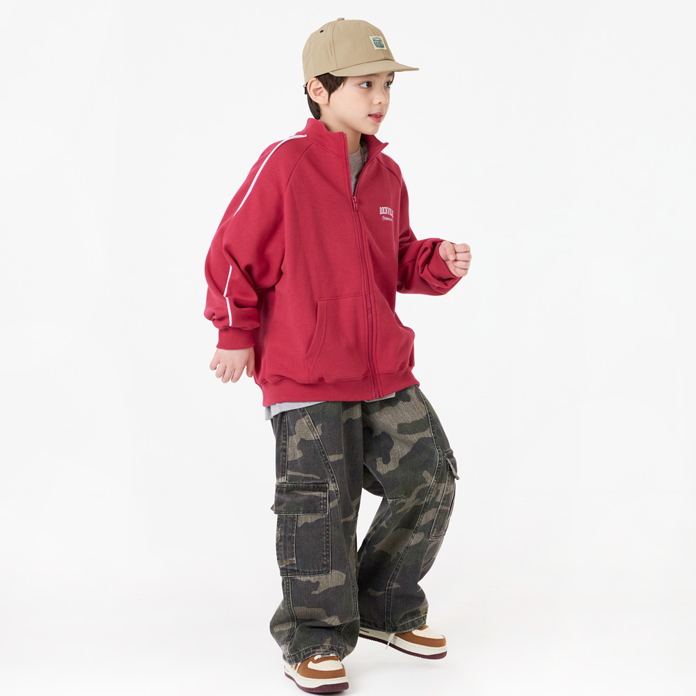 소매 양옆 라인과 뒷면 나염이 돋보이는 집업이예요