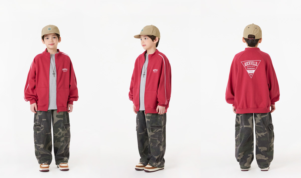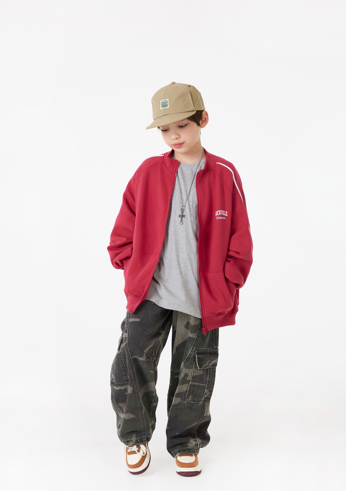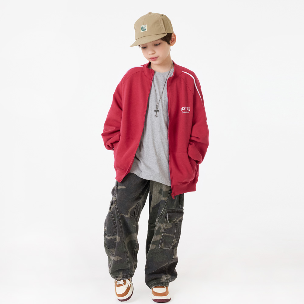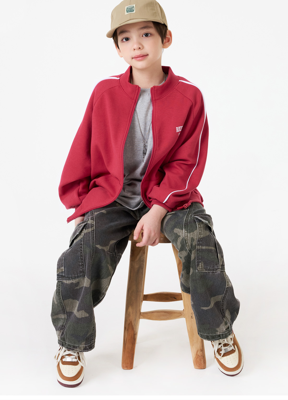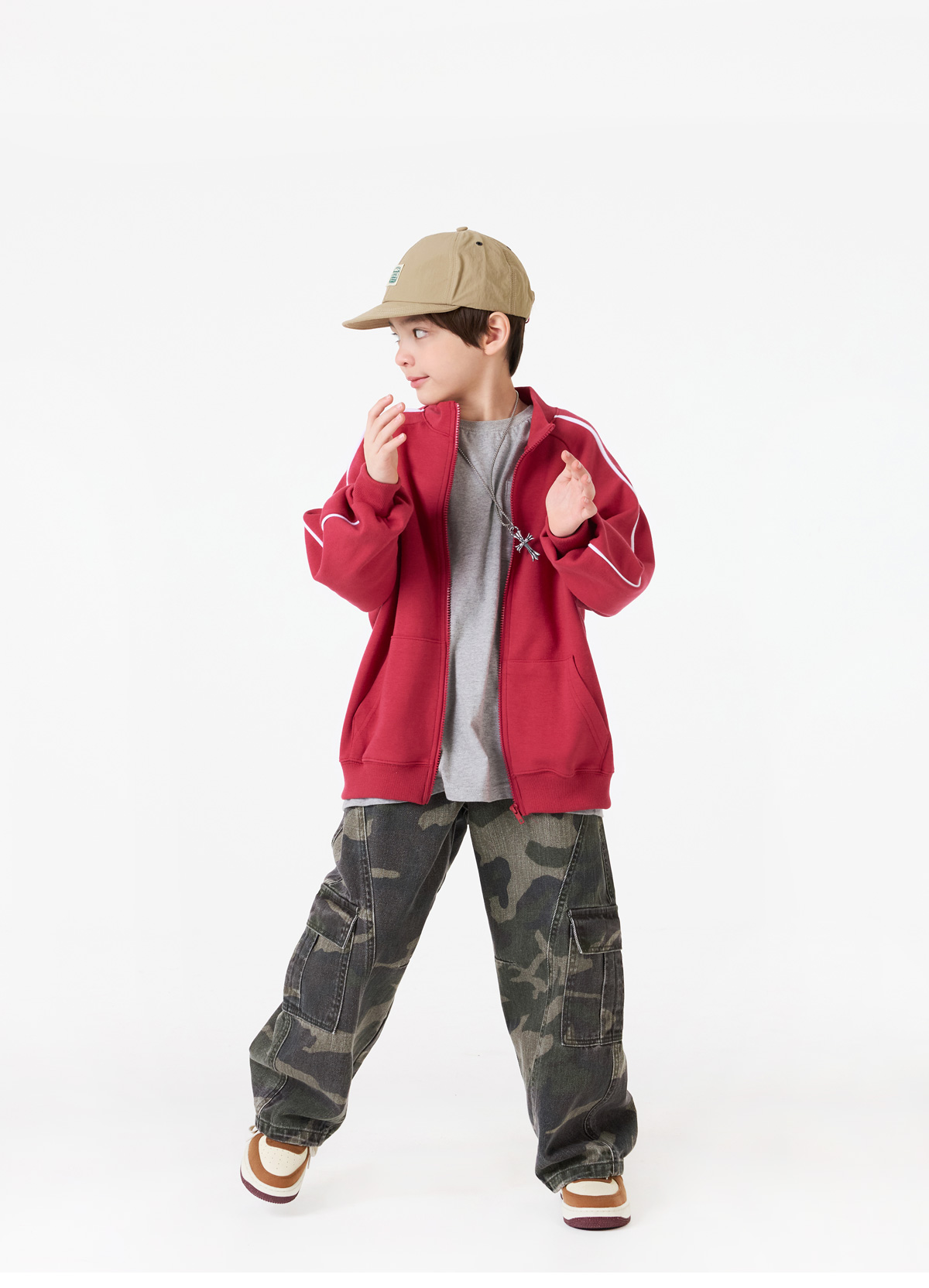 소매 양옆 라인과 뒷면 나염이 돋보이는 집업이예요
