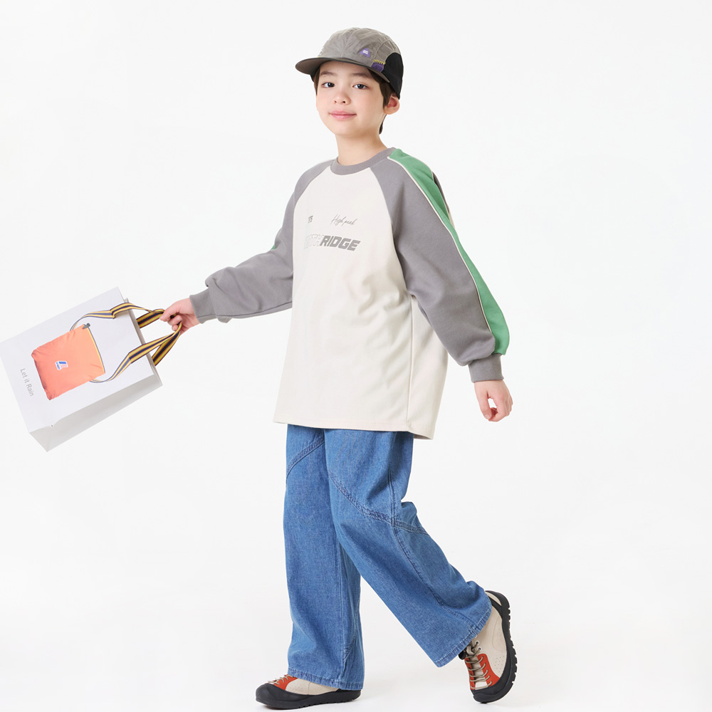 배색된 소매와 양옆 라인이 돋보이는 레글런 타입의 티셔츠예요
