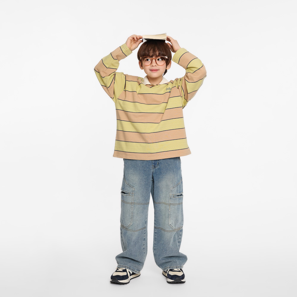 연두와 베이지 톤 스트라이프에 카라 디테일을 더해 캐주얼하면서도 깔끔한 분위기를 살려줘요.