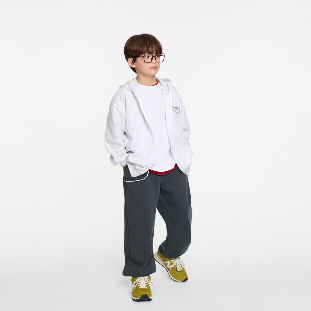 여유 있는 핏에 밑단 밴딩으로 안정감 있는 실루엣을 만들어줘요.