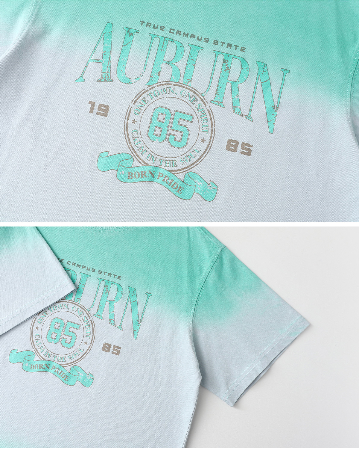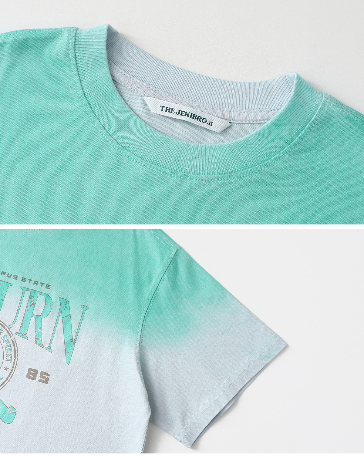 그라데이션 컬러감이 돋보이는 민트 피그먼트 티셔츠예요.