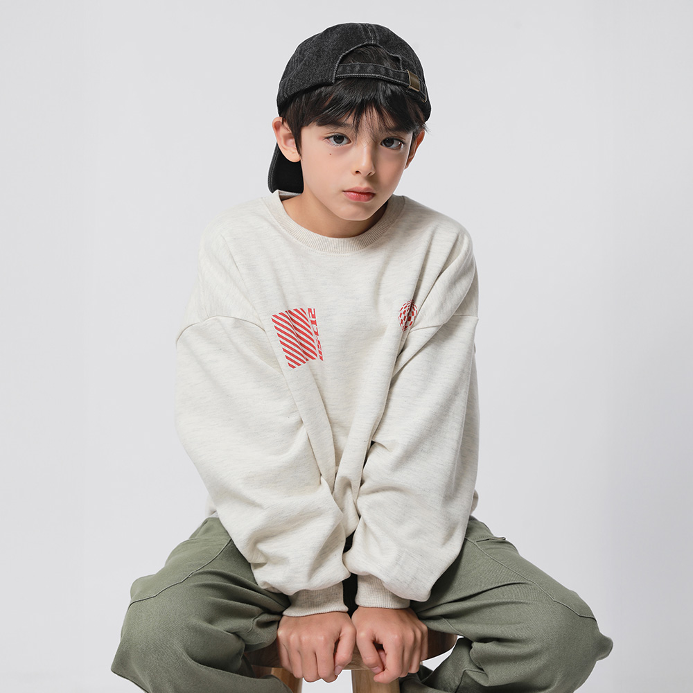 프린팅으로 포인트를 준 맨투맨이에요 은은한 오트밀 컬러로 여기저기 함께 입기 좋아요