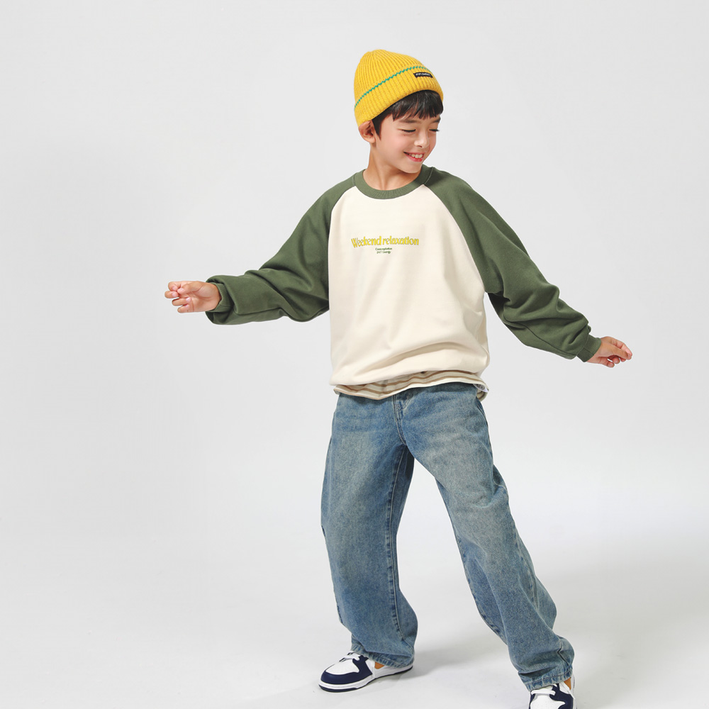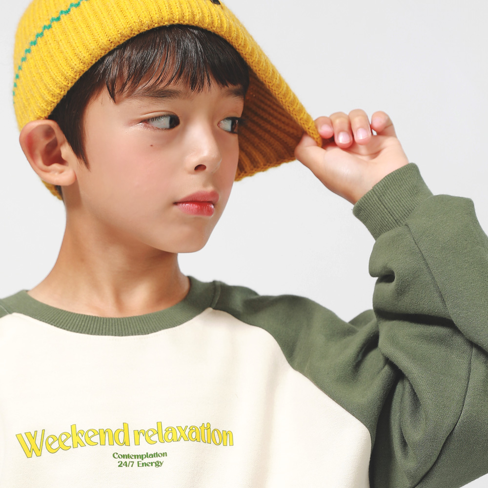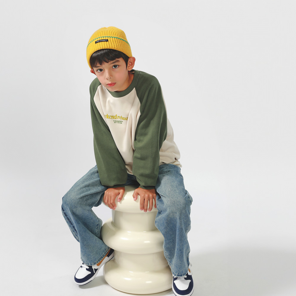 숄더라인이 툭 떨어지는 레글런 소매의 레귤러핏의 맨투맨이에요 레터링으로 자그마하게 포인트를 주었답니다