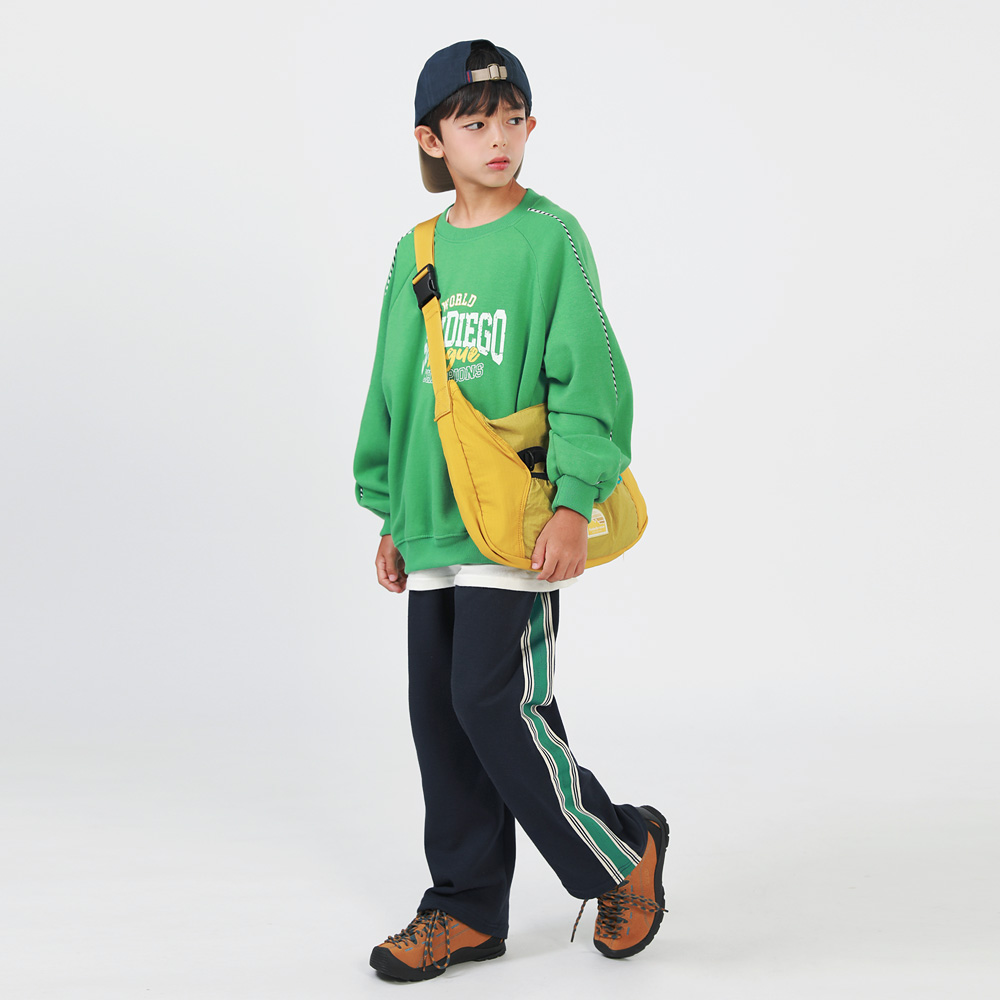 사이드라인이 돋보이는 팬츠예요 내츄럴하게 일자로 떨어지는 핏으로 예쁘게 착용하기 좋답니다