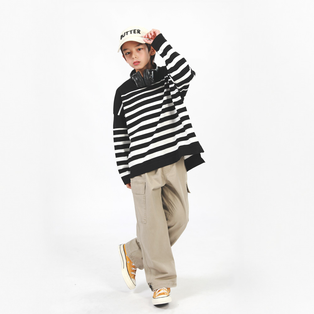 그라데이션처럼 다른 두께감의 스트라이프 패턴으로 스테디하면서 유니크한 무드를 연출해주는 니트예요 앞뒤 언발 기장으로 힙을 살포시 덮어준답니다