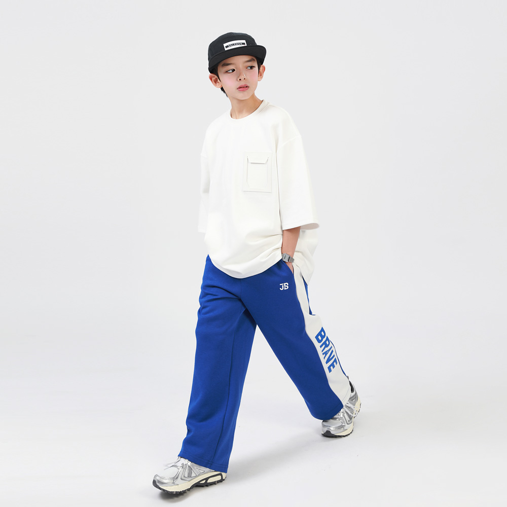 양쪽 라인과 영문이 돋보이는 캐쥬얼 팬츠예요 스포티한 무드로 티셔츠,남방 등 다양한 상의와 함께 연출할 수 있어요