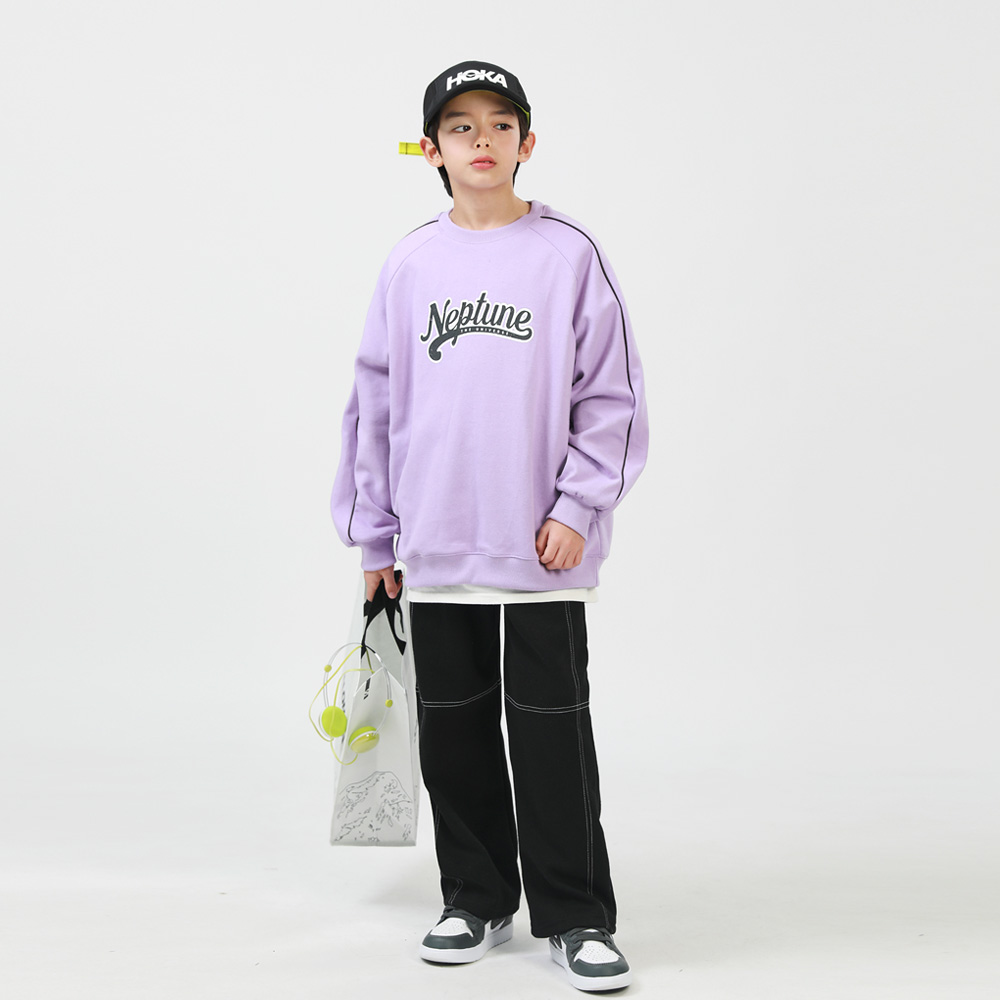 숄더부터 소매까지 떨어지는 사이드 라인과 전면 영문 레터링으로 스포티한 무드를 더해준 맨투맨이에요 레글런타입으로 활동성있고 편안하게 착용하기 좋아요 유니크한 퍼플컬러로 세련된 데일리룩을 연출할 수 있답니다